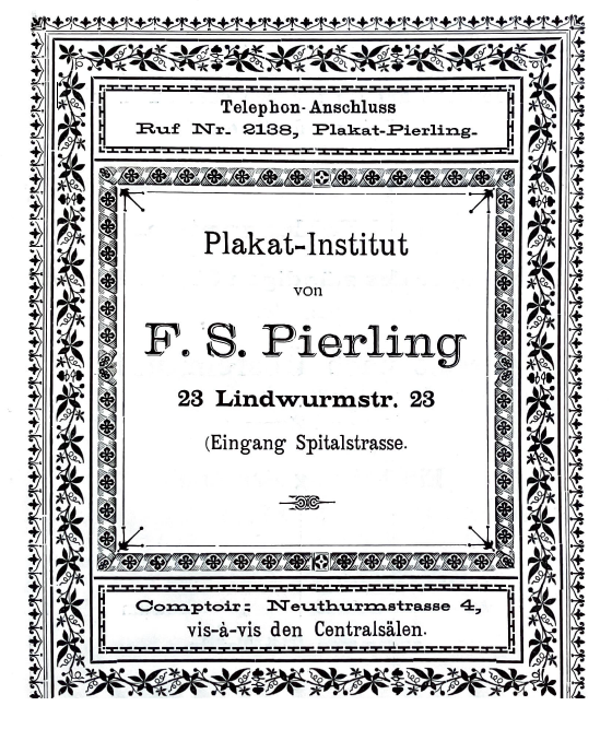 Bedeutend war wohl seine jahrzehntelange Beteiligung an den „Vereinigte(n) Münchener Plakat Instituten Hartl & Pierling“. Zusammen mit Kommerzienrat Franz Hermann Hartl und F.S. Pierling war er Mitinhaber dieser Firma. Die Firma warb damit, über 1.200 Plakatsäulen und Tafeln in allen Stadtbezirken zu betreiben.