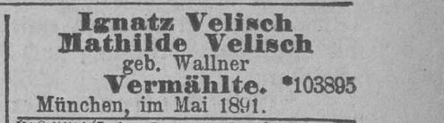 Anfang 1891 erwarb Ignaz Velisch die Bayerische Staatsangehörigkeit sowie das Heimatrecht von München.