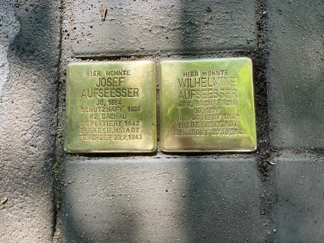 Seit dem30. April 2026 erinnern zwei Stolpersteine Am Plärrer 8 - ehemals Dennerstraße 5 - in Nürnberg an Joseph und Wilhelmine Aufseesser.